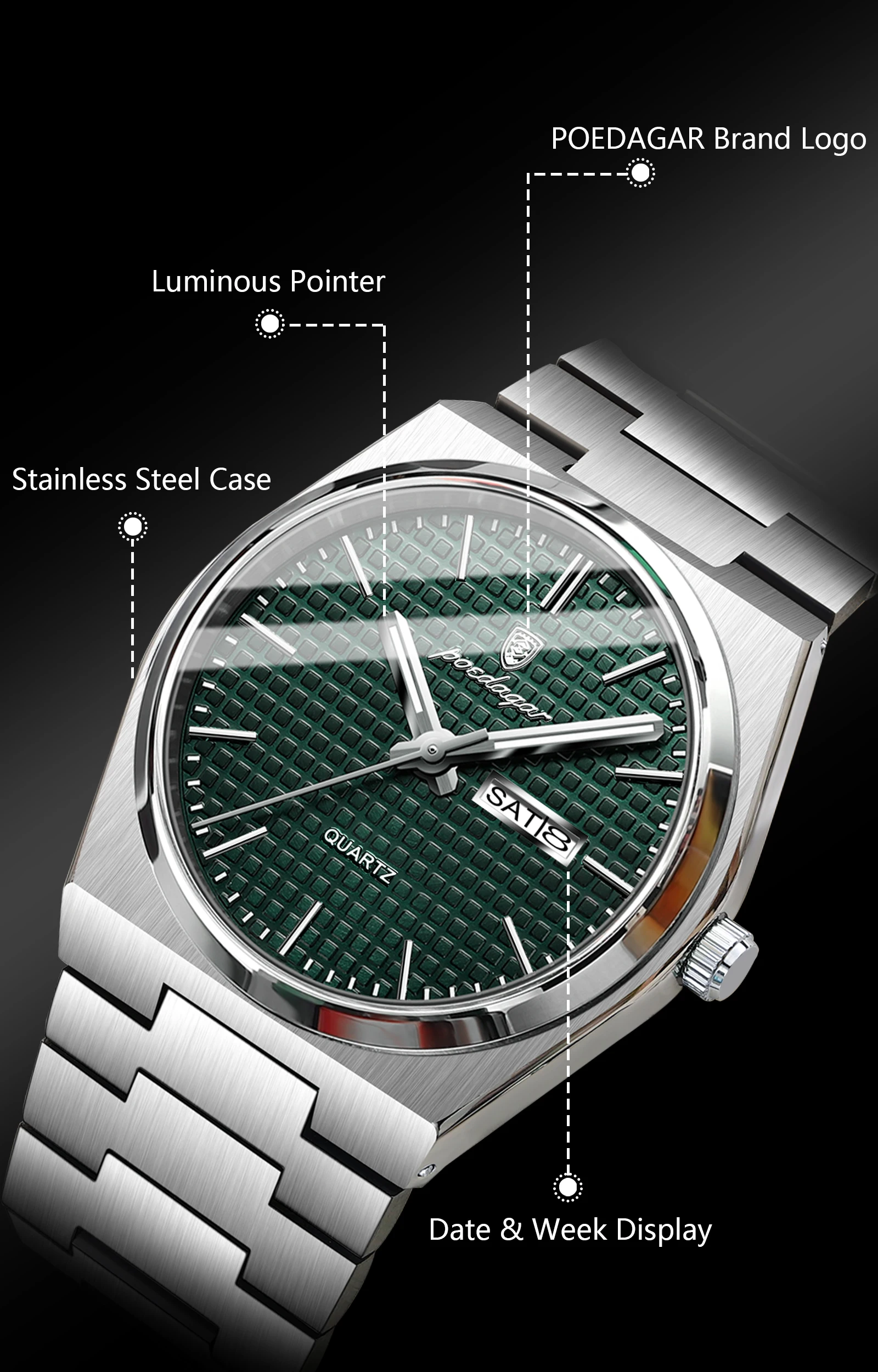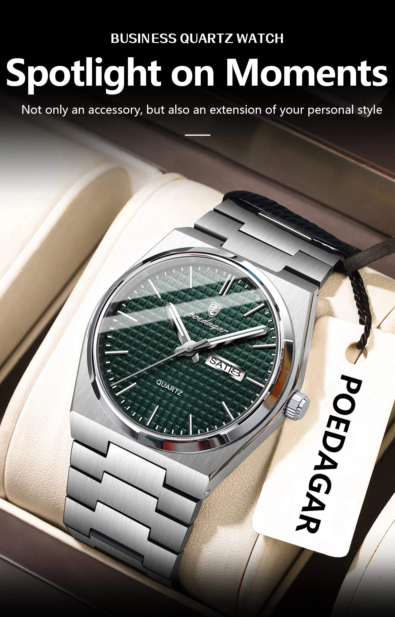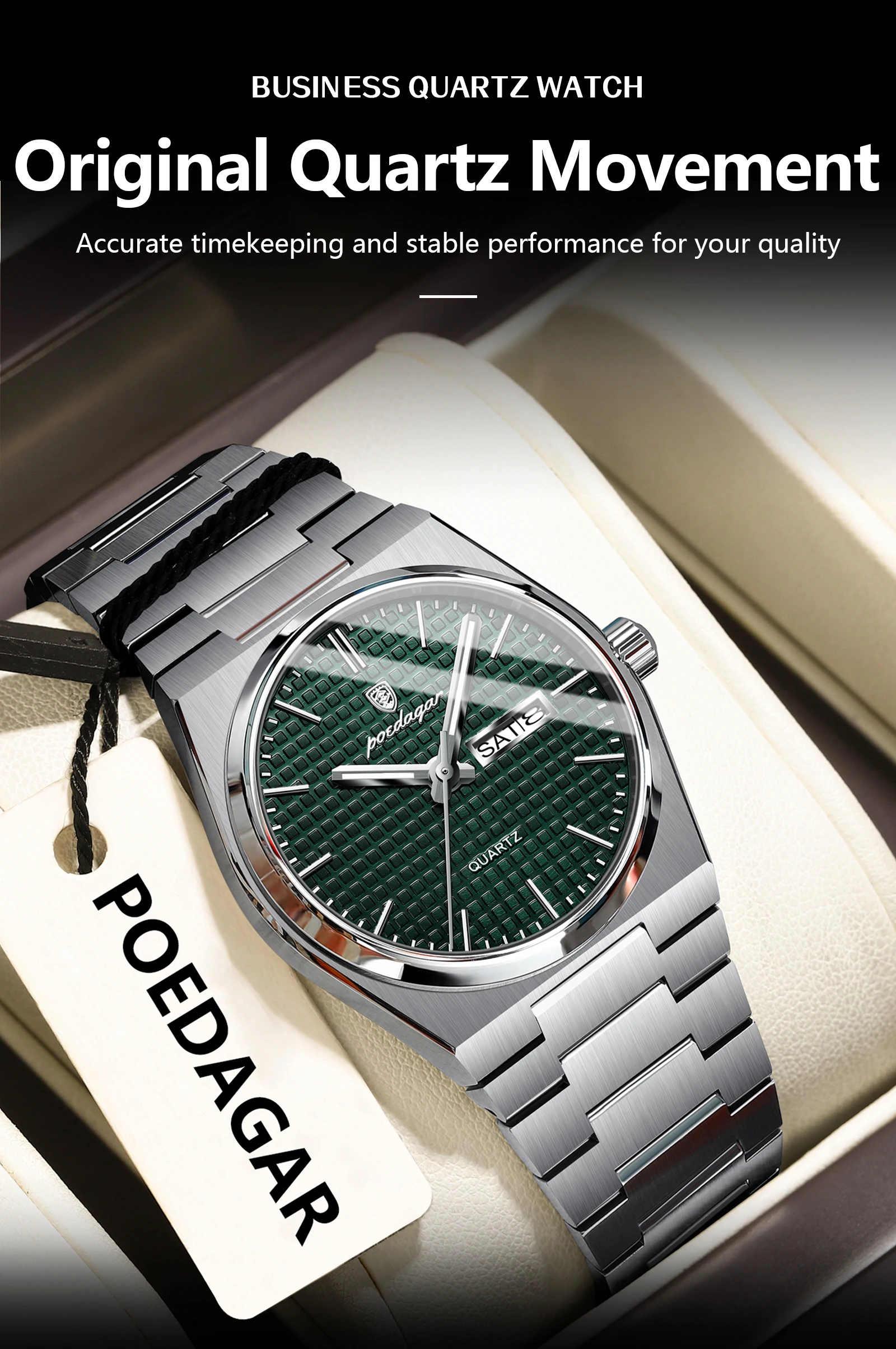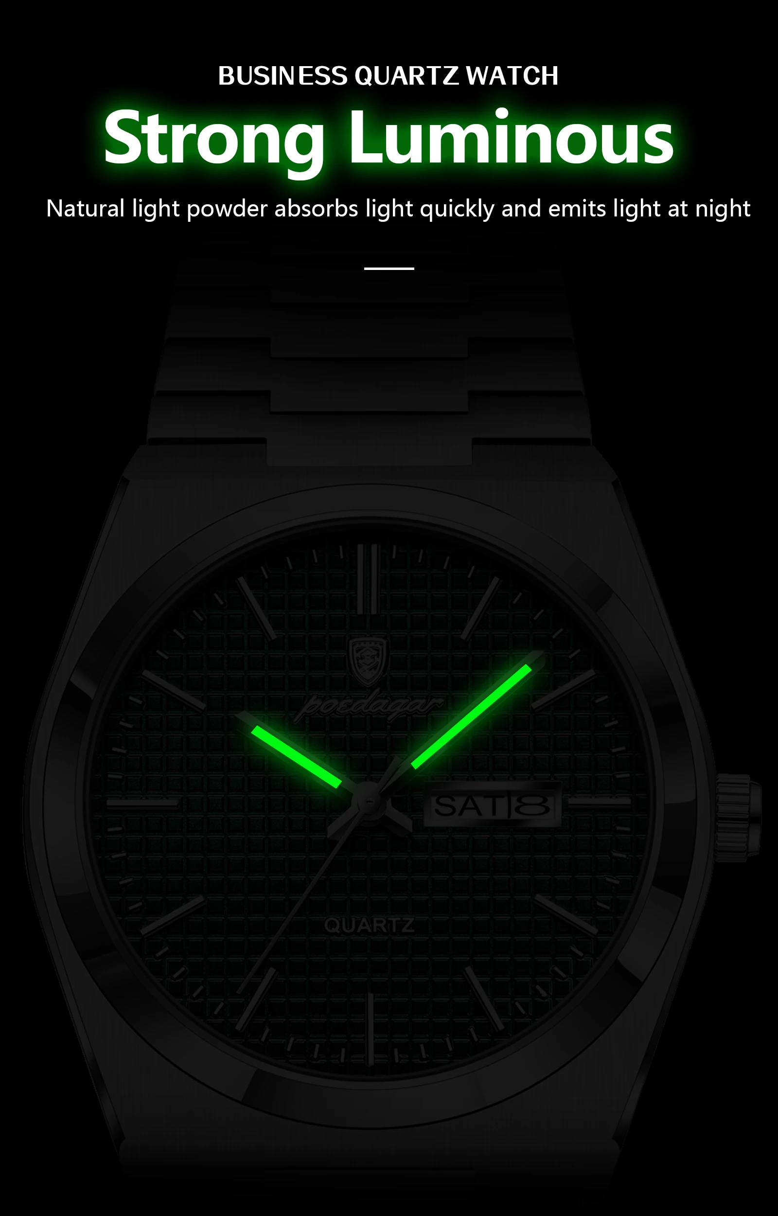 POEDAGAR Luxury Original Man Watch Waterproof Stainless Steel Luminous Men's Wristwatch Date Week Quartz Fashion Watches For Men