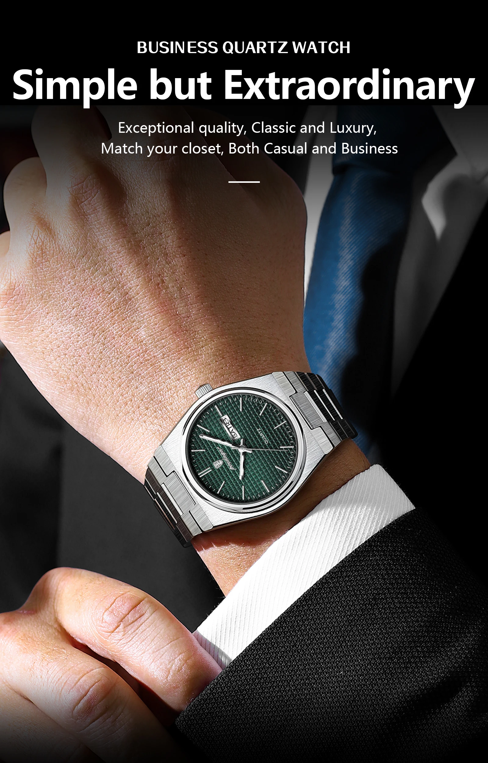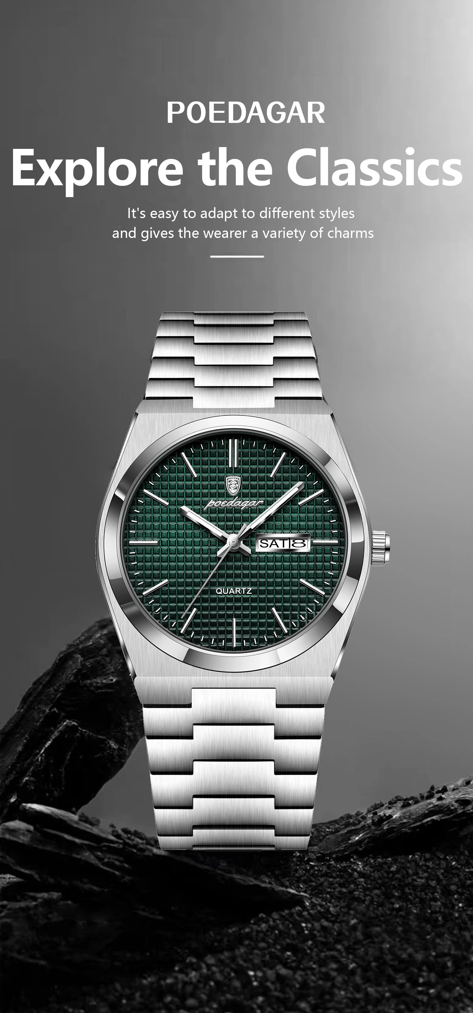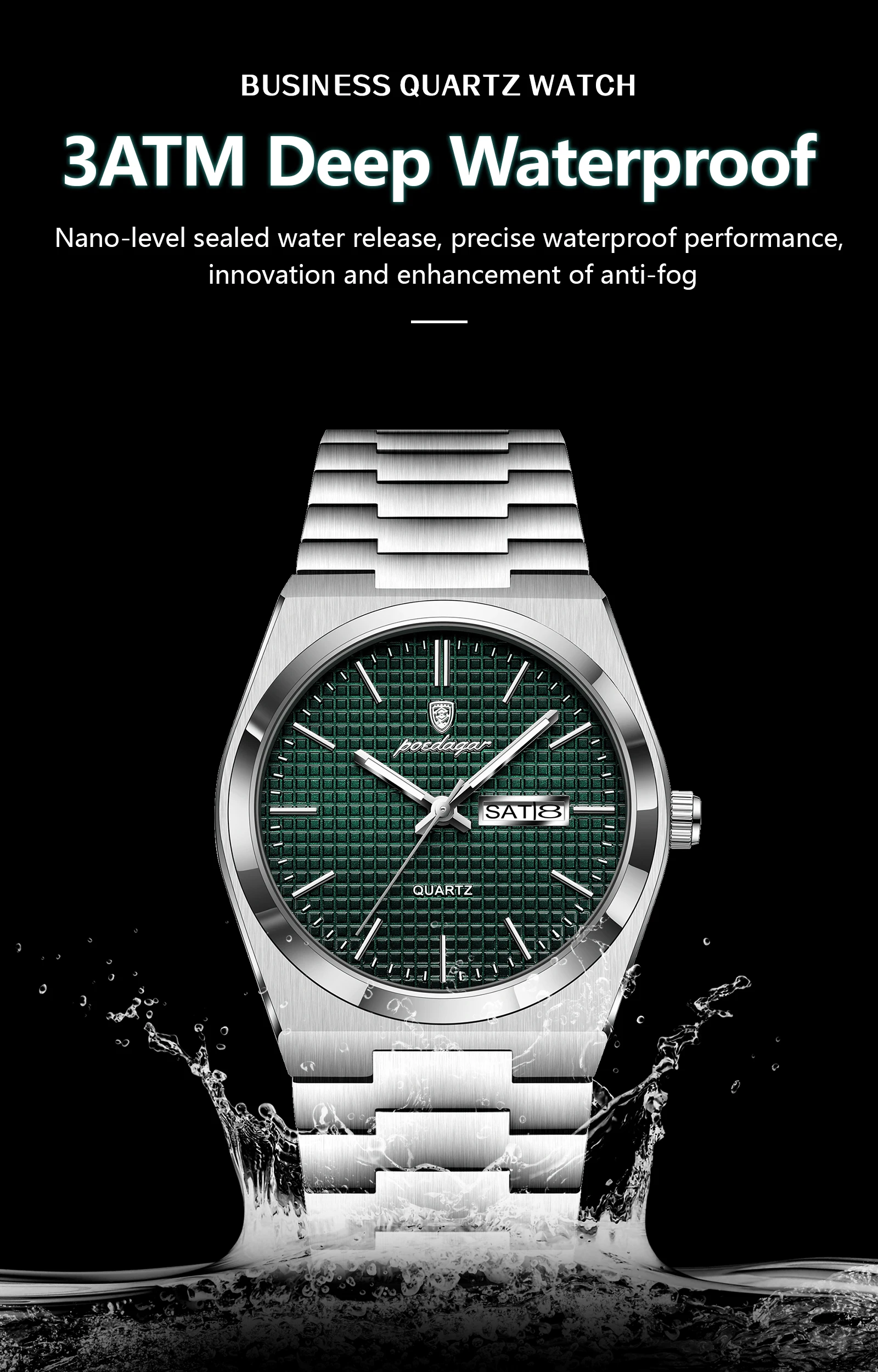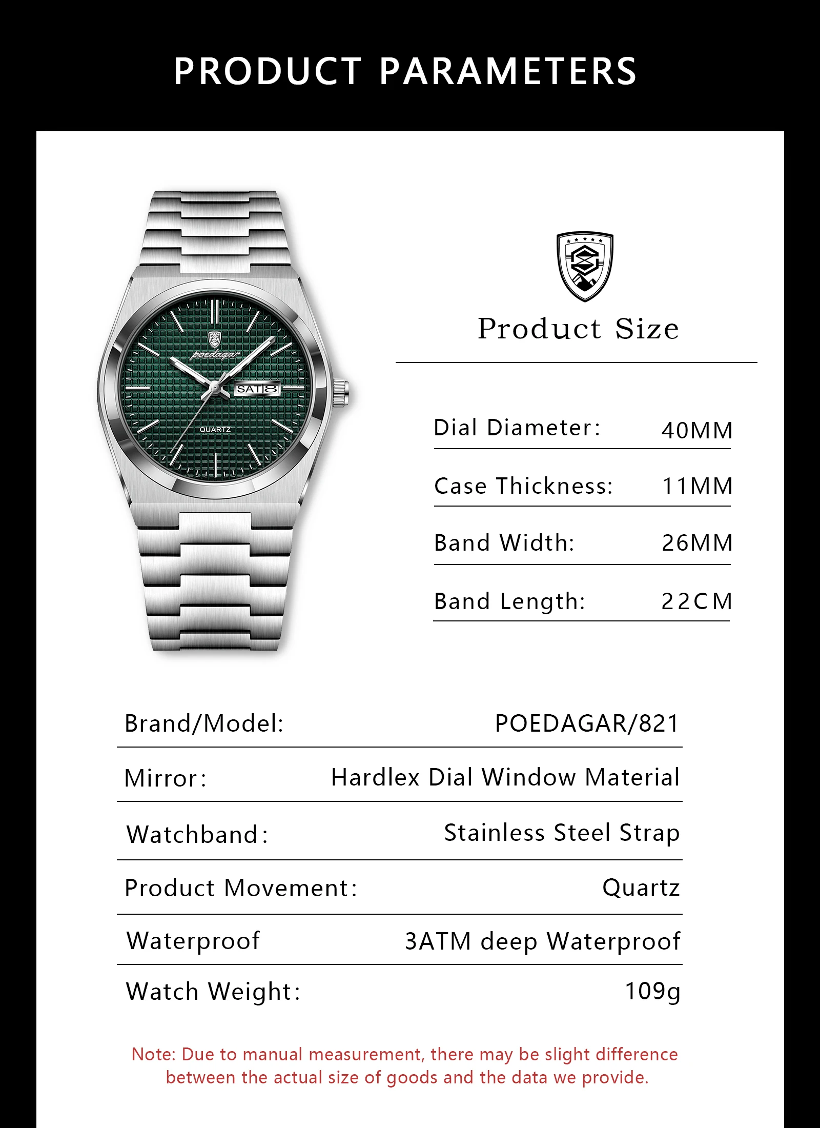 POEDAGAR Luxury Original Man Watch Waterproof Stainless Steel Luminous Men's Wristwatch Date Week Quartz Fashion Watches For Men